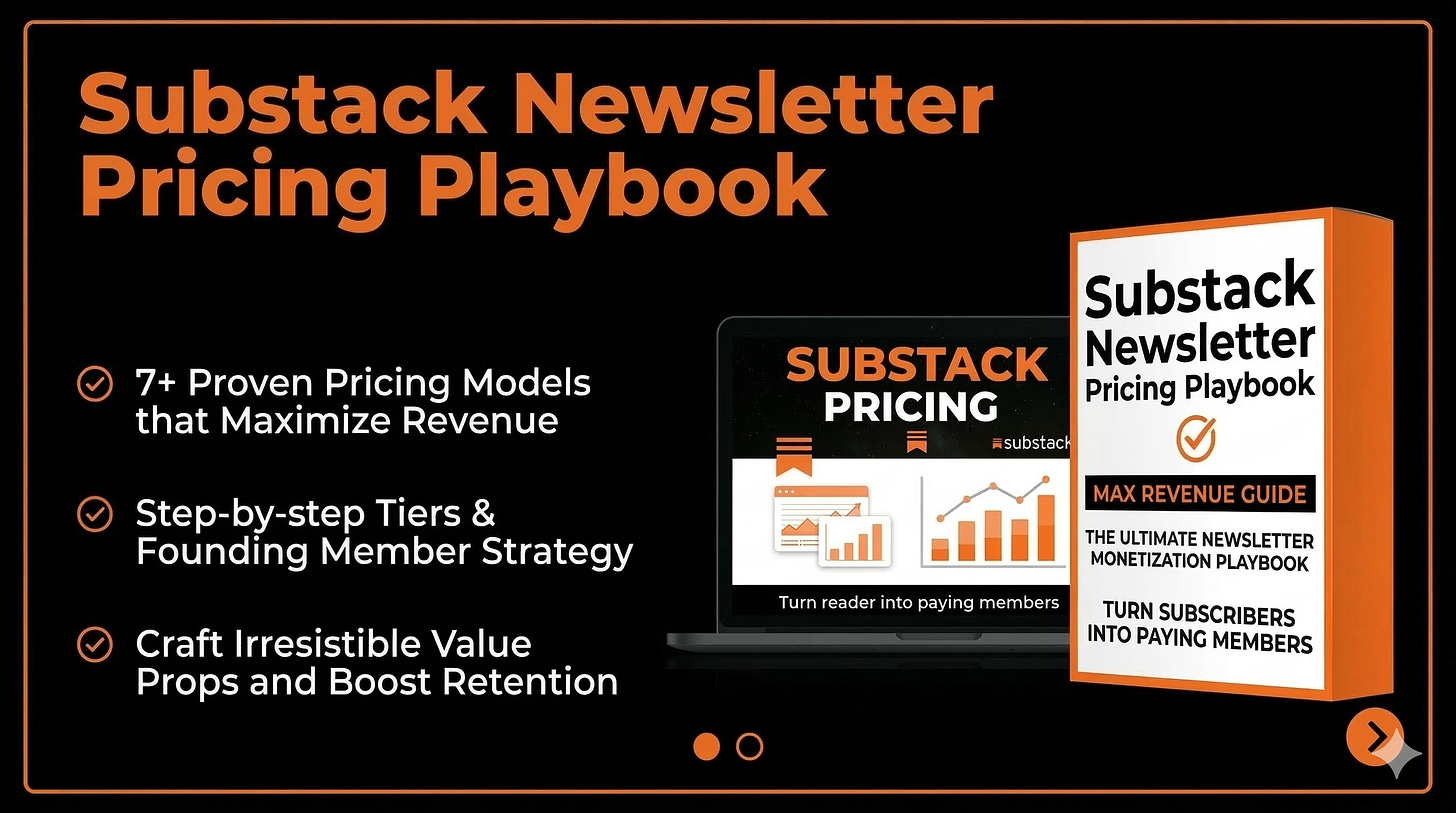 The Substack Newsletter Pricing Playbook: 7 Substack Pricing Models Behind the Highest-Earning Newsletters covers every model in detail, with real revenue numbers, specific creator examples, how to stack models for maximum income, and a complete paid newsletter launch timeline.